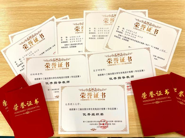 同时,吴宇坤、时秋峰两位指导老师获得“优秀指导老师”,太原理工大学获得“优秀组织奖”。